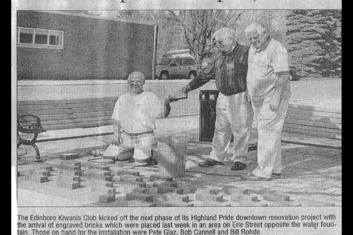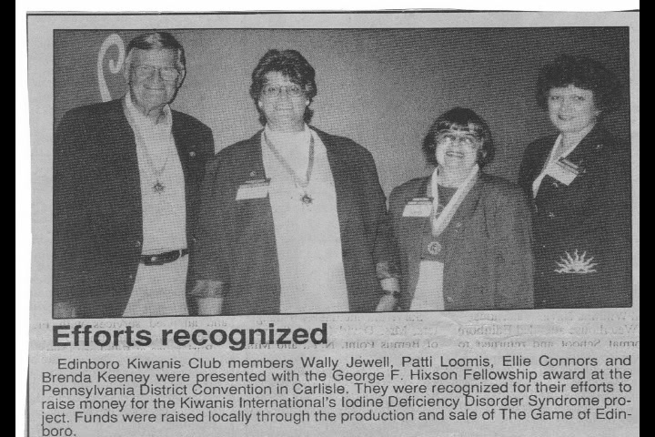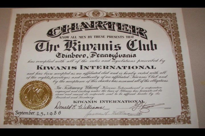 The Edinboro Kiwanis Club was organized on September 25, 1986, with the following charter members: