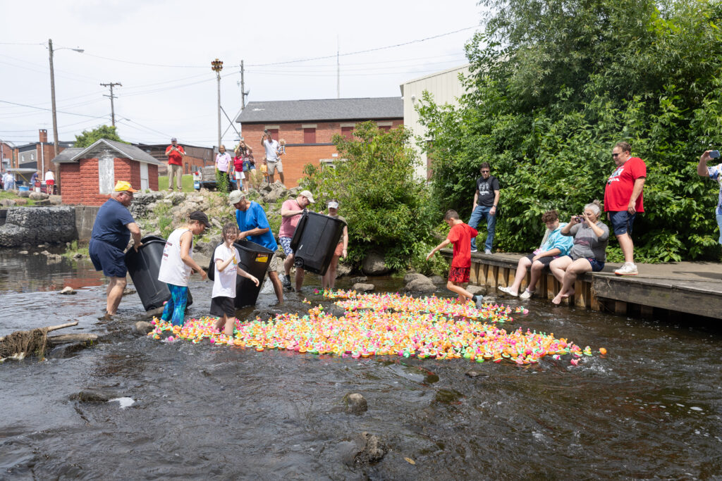 Preparation starts over the winter with our club hard at work cleaning ducks, soliciting prizes, and selling tickets at local events, and it all leads up to the finish line, where the ducks are corralled into a chute and the winning numbers are called out and recorded.