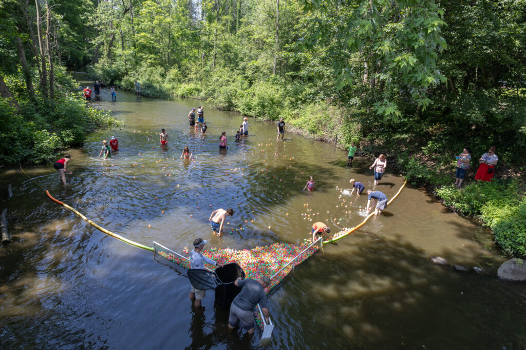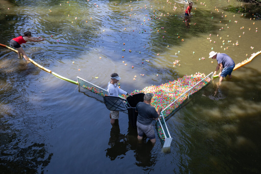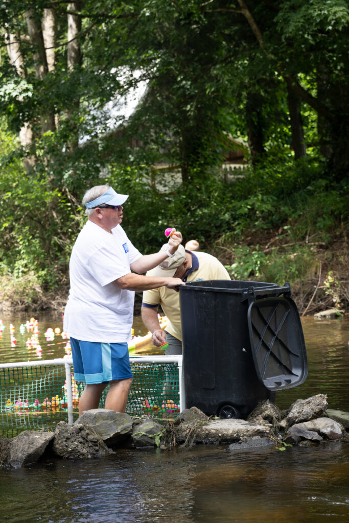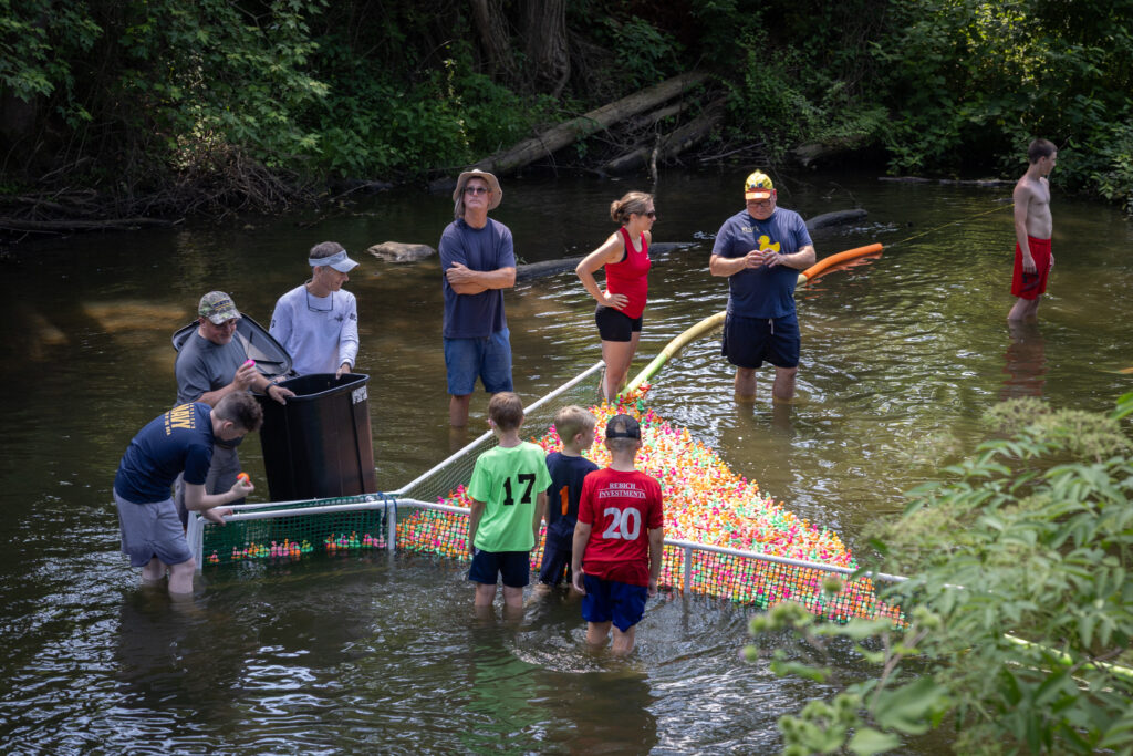 Our biggest fundraiser of the year is definitely the Fourth of July Duck Race. For the last 26 years our club has released hundreds (if not thousands) of plastic ducks into Mallory Creek, rounding them back up at the Normal St. bridge.